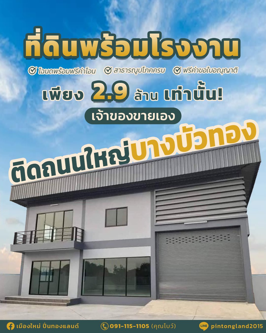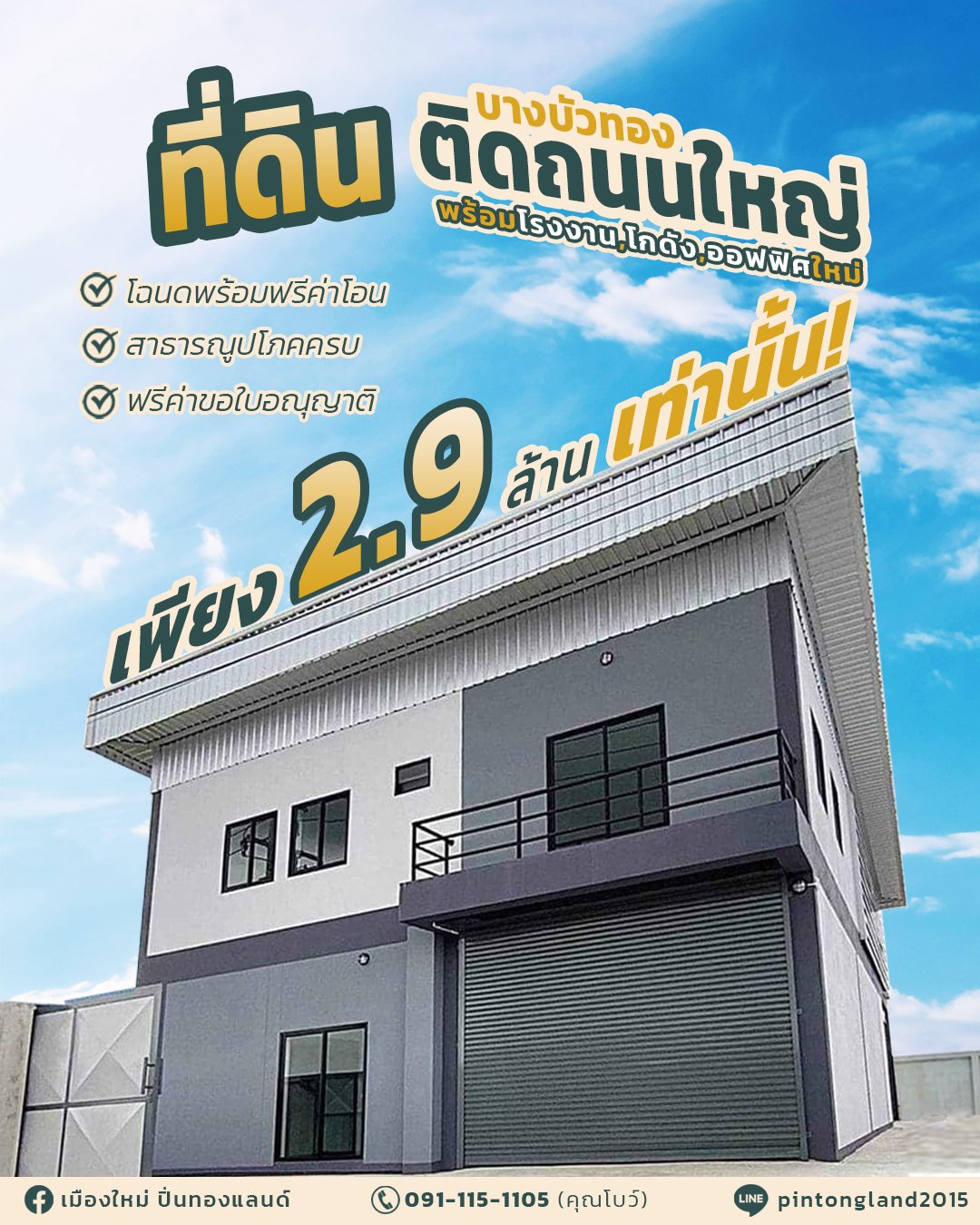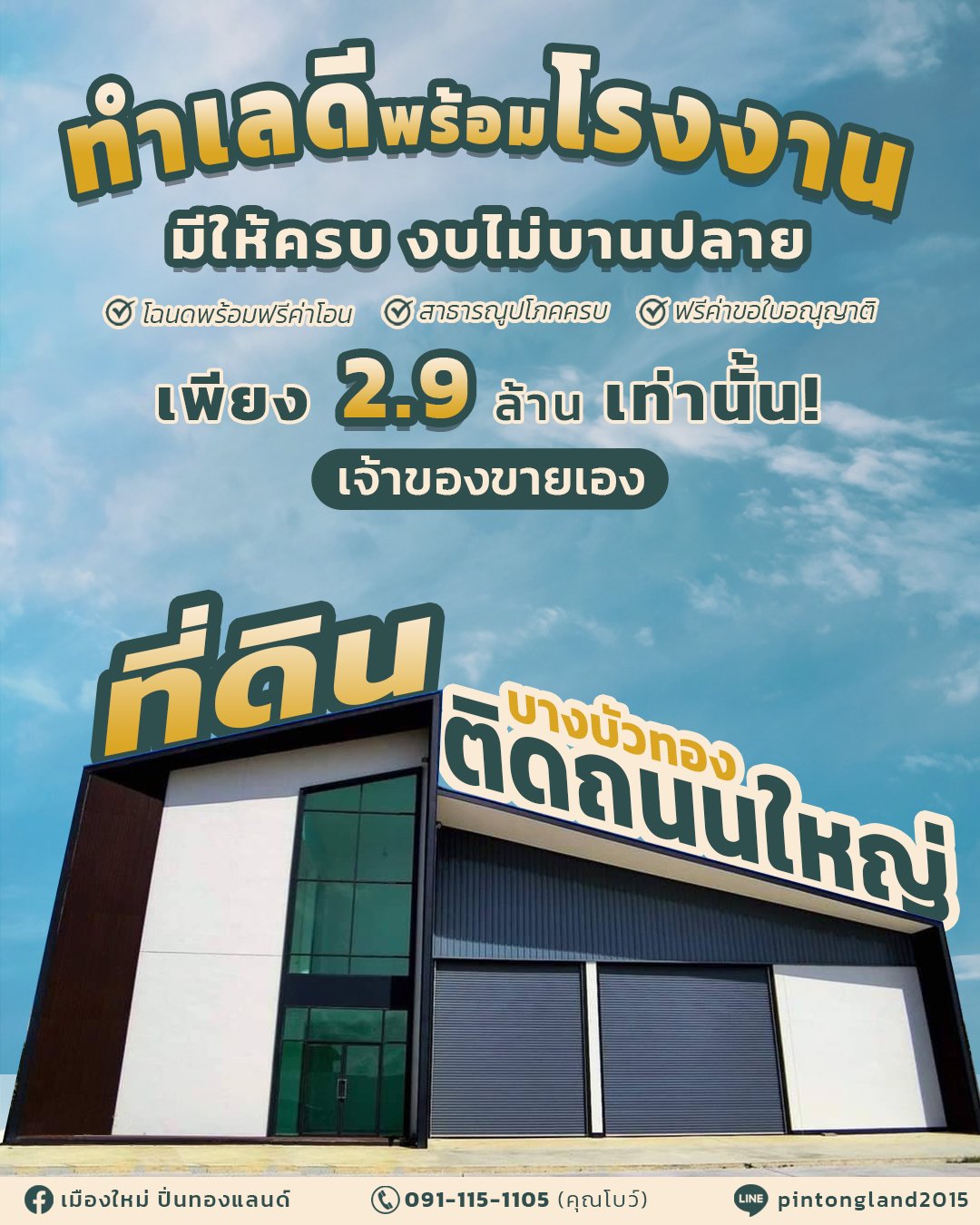 ที่ดินทำเลทองติดถนนใหญ่ ราคาถูก ทำเลดี เหมาะสำหรับสร้างโรงงาน,โกดัง,ออฟฟิศใหม่ (ถูกกว่าเช่า) มาพร้อมกับโอกาสดีๆของนักลงทุน เปิดโครงการใหม่ มังกรทองแฟคทอรี่ สาธารณูปโภคครบครัน โฉนดพร้อมโอนกรรมสิทธิ์ ไม่มีติดภาระผูกพัน
